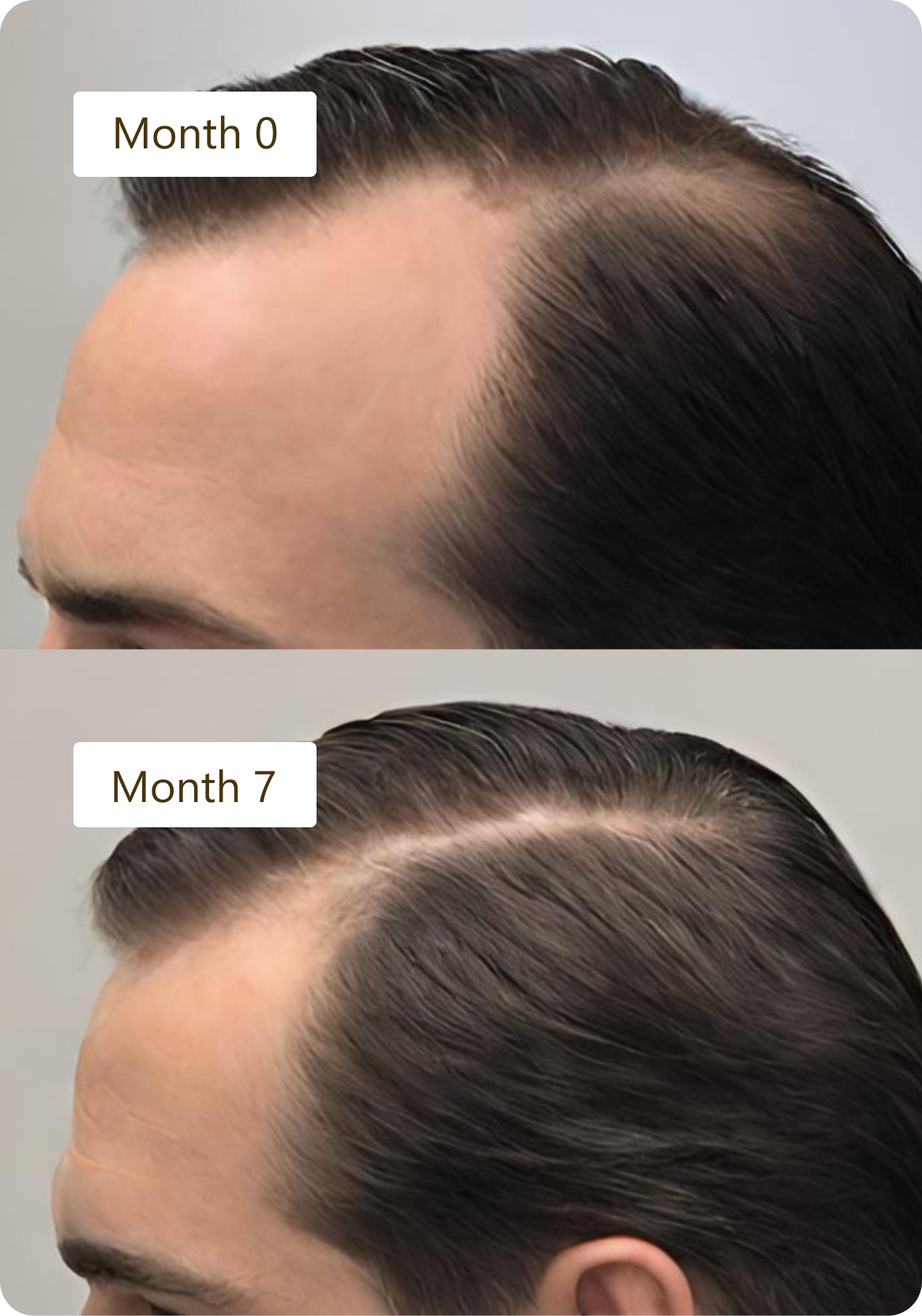 "Struggled with alopecia related hair loss. The custom regime amazed me! Saw great results after 4 months of use. Temples are filled in. Hair is so much thicker. Experts are also available 24x7 for support which was fantastic to answer any queries!"